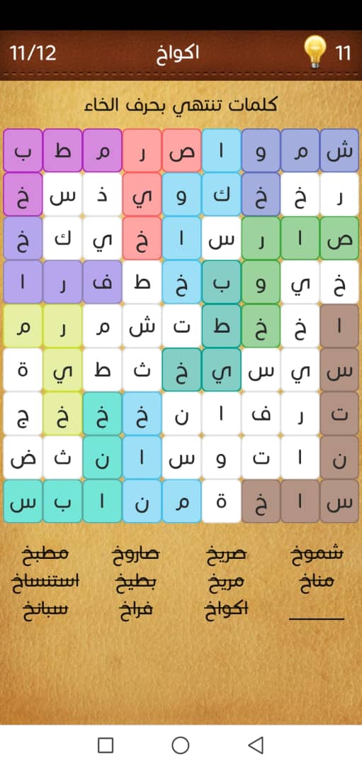 كلمات تنتهي بحرف الخاء وصلات كلمة السر المجموعة الثالثة عشر المرحلة السابعه خطوات محلوله