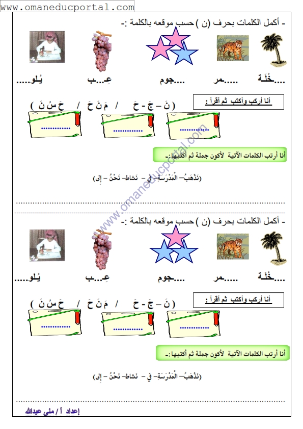 مذكرة تدريبية وتمارين شاملة في اللغة العربية للصف الثاني الفصل الثاني